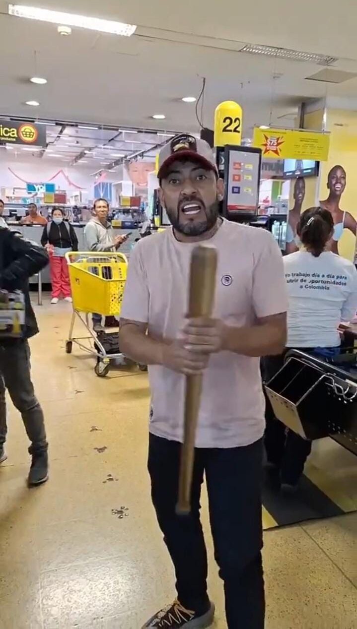 En redes sociales se viralizó el video de un cliente, quien en este caso es un cliente de Almacenes Éxito de la Calle 80 en Bogotá. El hombre llegó a la tienda con un bate en la mano a pedir a gritos la devolución de su dinero.